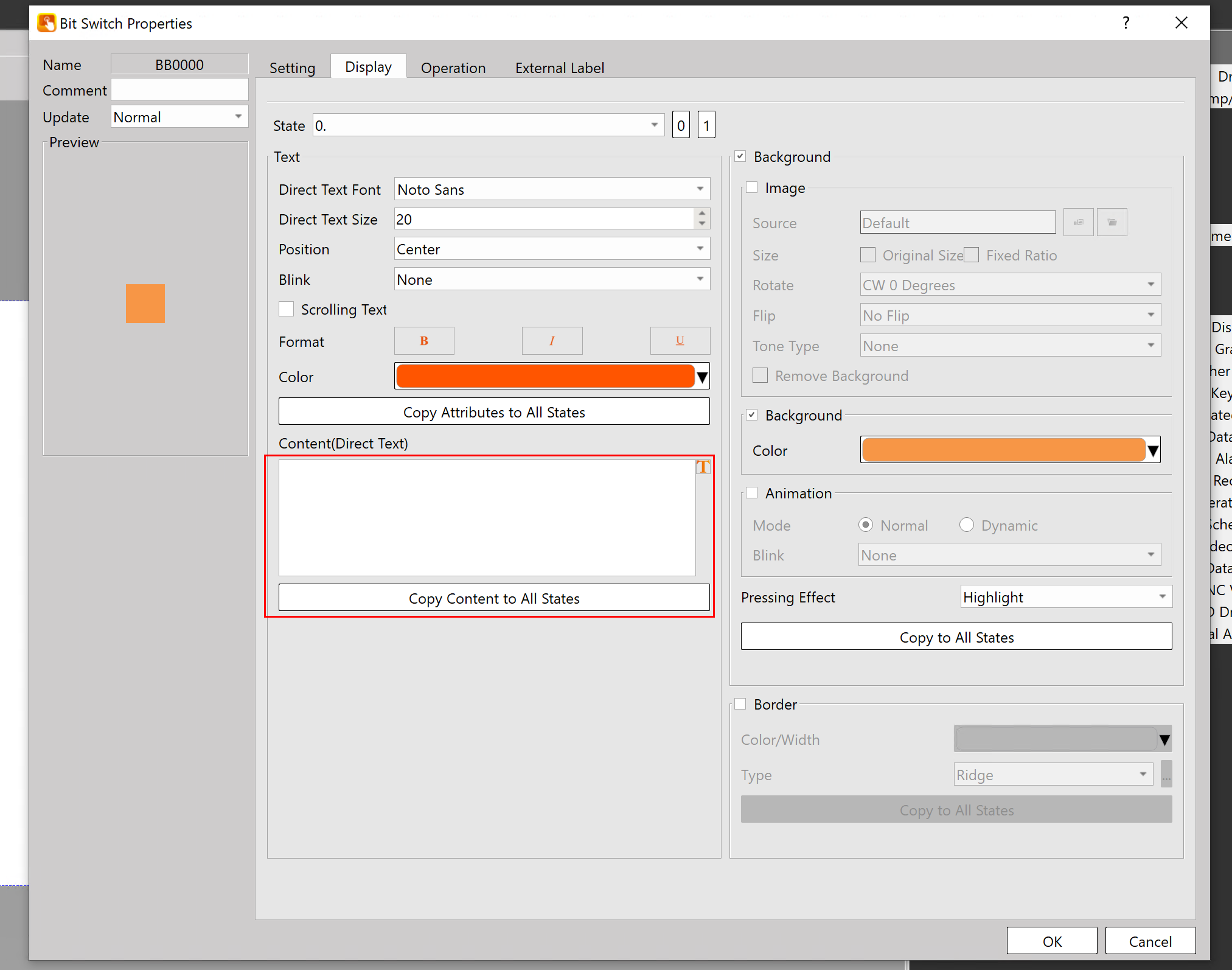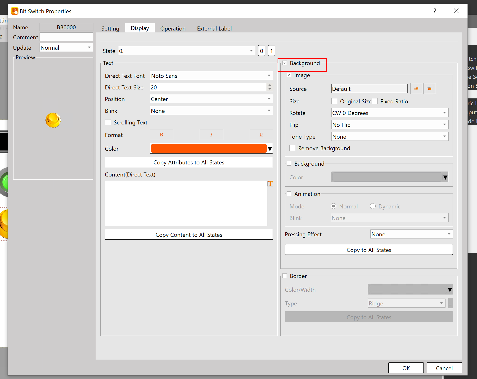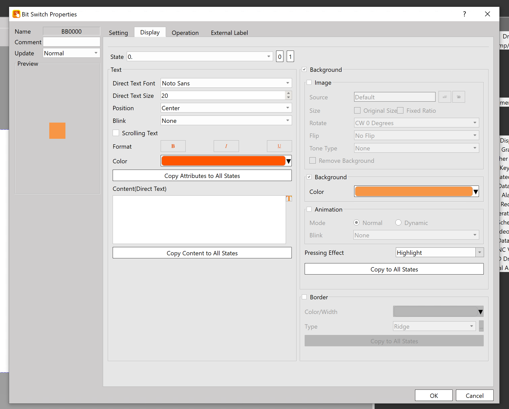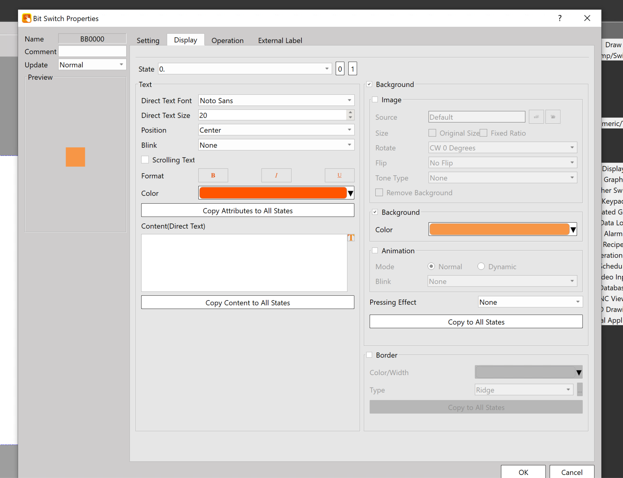 次はDisplay Tabを開き、ビットスイッチの状態表示を設定します。