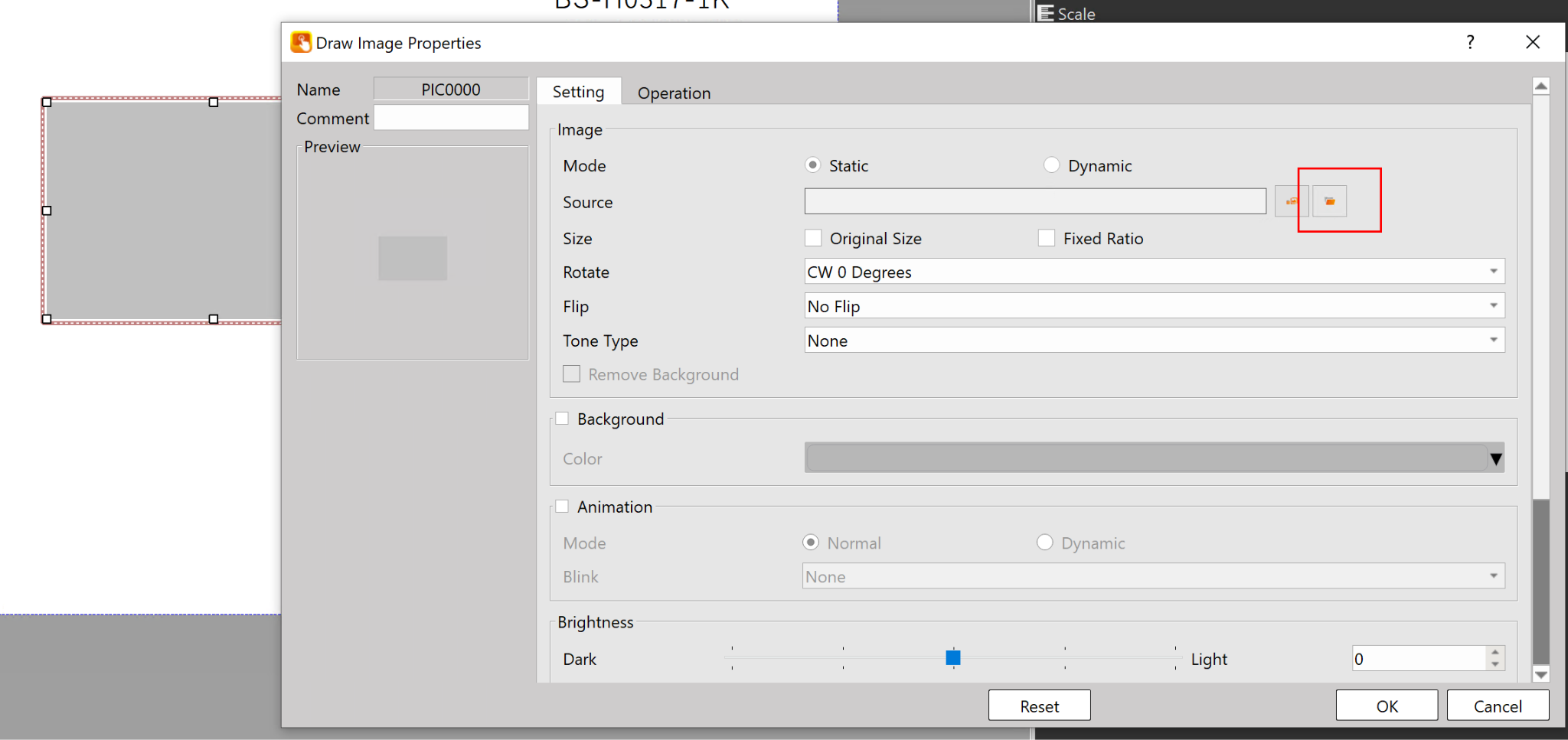 スイッチをみなさんがよく使用する四角形に変更します。Background にあるImage Checkboxを外します。