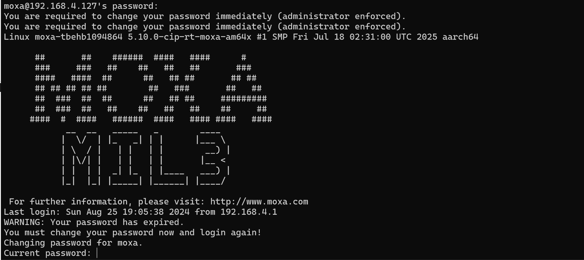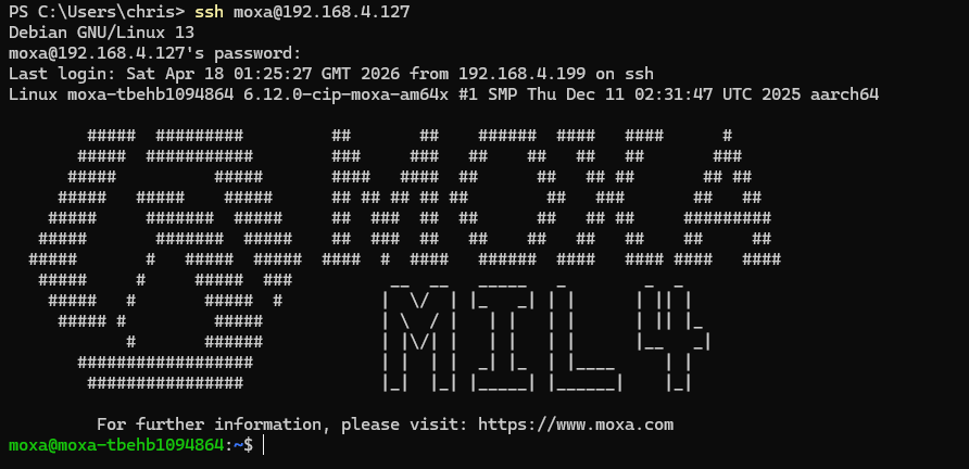 ssh moxa@192.168.4.127 |