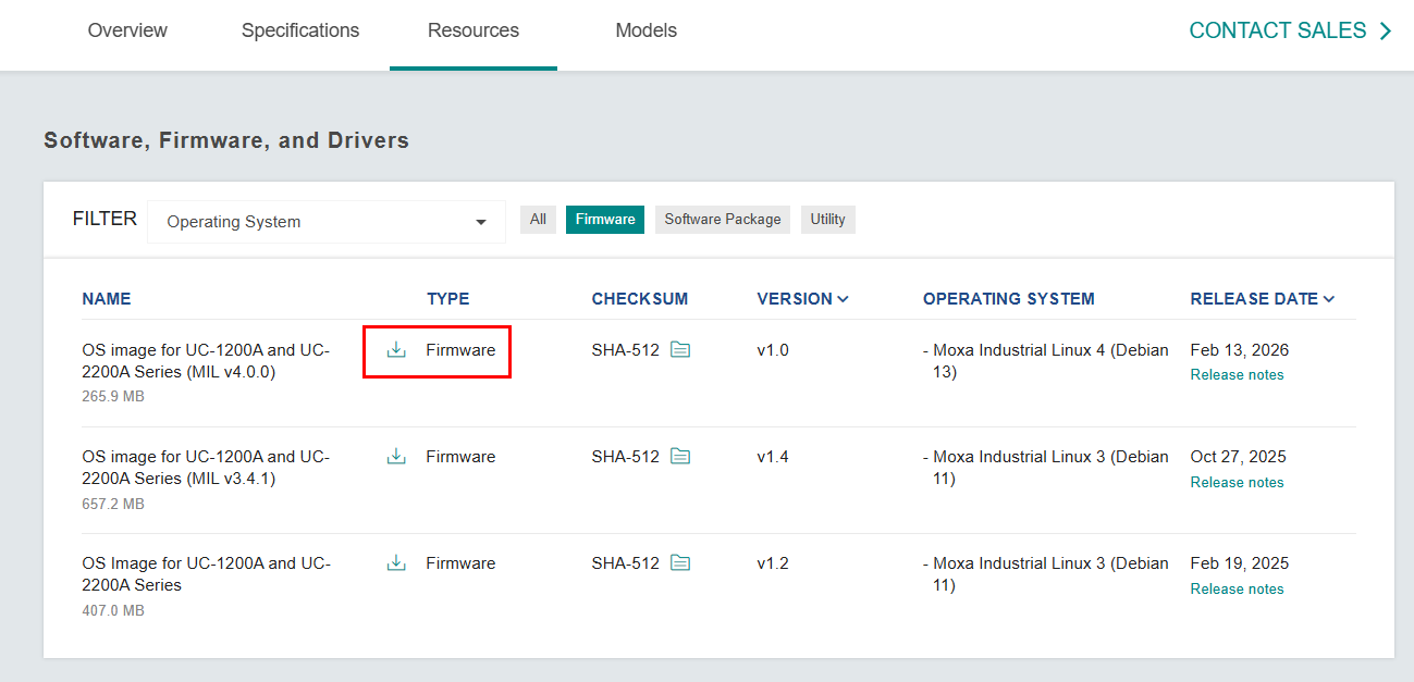 下記のLinkからMOXA UC-2200AのMIL4イメージFILEをDownloadしてください。