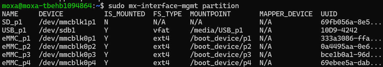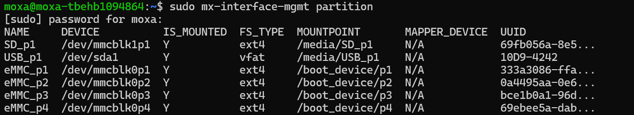 moxa@moxa-tbehb1094864:~$ sudo mx-interface–mgmt partition |
