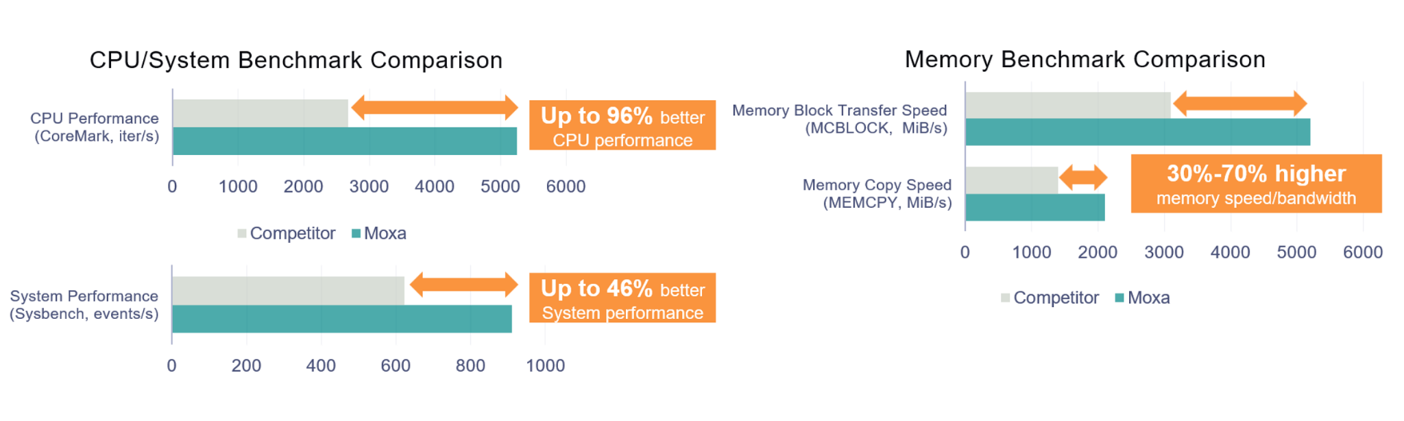 MIL は、Debian が持つ実績ある安定性、高いパフォーマンス、豊富なパッケージ群に、Moxa 独自のハードウェア・ソフトウェア最適化技術を融合しています。この垂直統合により、一般的な OS ディストリビューションと比べて、システム性能および CPU 性能をさらに高め、オープンソースの柔軟性と産業用途に求められる高い信頼性・性能を両立します。