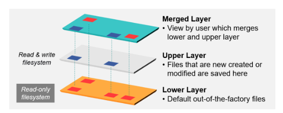 下位レイヤー(Lower Layer):工場出荷時のデフォルトファイルが保存される読み取り専用領域です。