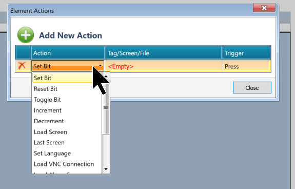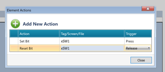ActionのDrop-listからボタンを押したときの動作を設定できます。