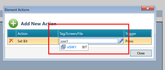 次はTag/Screen/Fileの欄から、ボタンを押したときセットするBit変数に割り付けます。