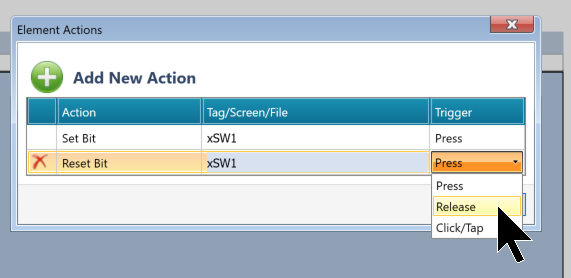 Done!今回の例はボタンを押したとき→xSW1をTrueし、ボタンをリリースしたとき→xSW2をFalseにします。