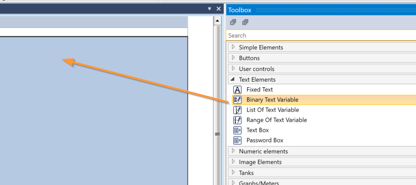 ToolboxからBinary Text Variableを追加します。