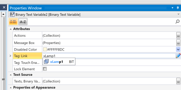 次はProperties→Tag:Linkでプログラムの変数に割り付けします。
