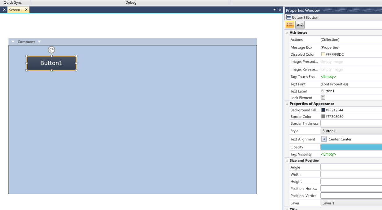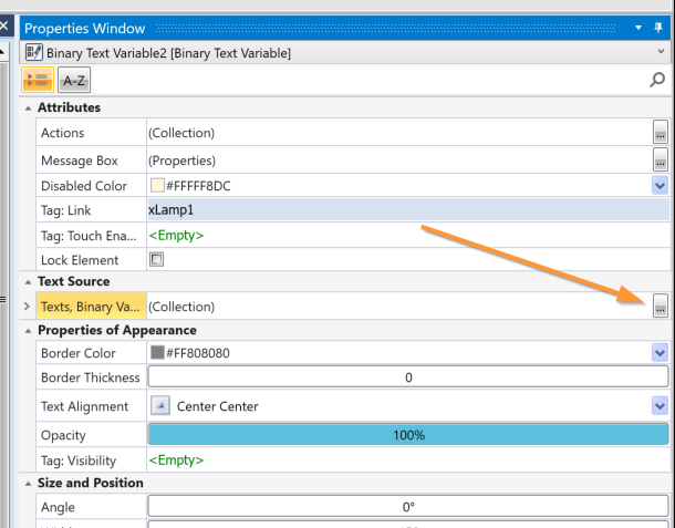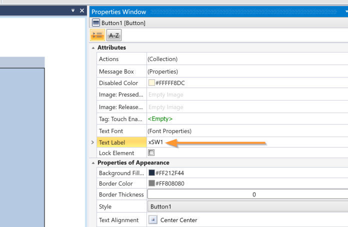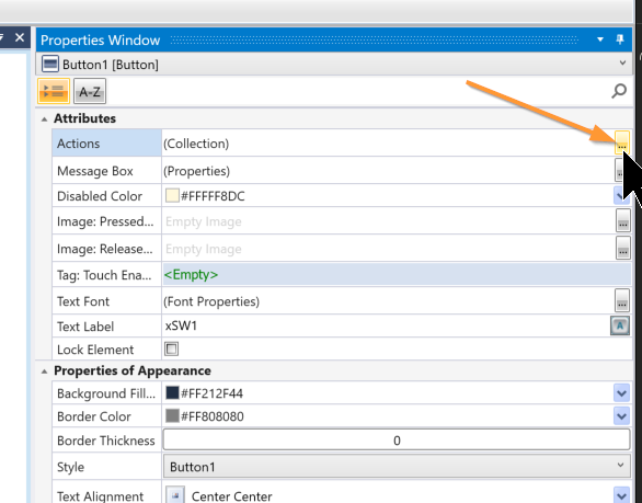 次はHMIボタンを押したときの動作を追加します。Properties→Actionsの隣にある…ボタンをクリックします。