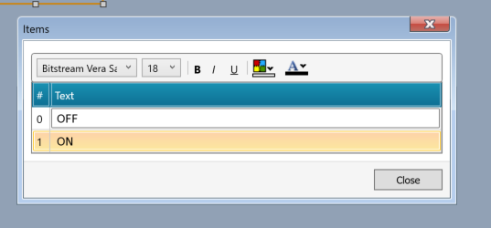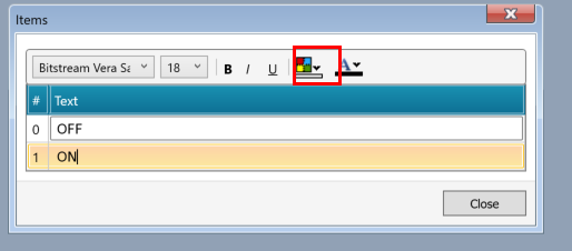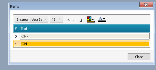 下図のように0=OFF、1=ONを表示するように設定します。