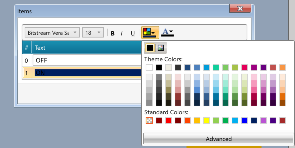 もし現在値は0なら、先の設定通り背景が白、文字が黒になります。