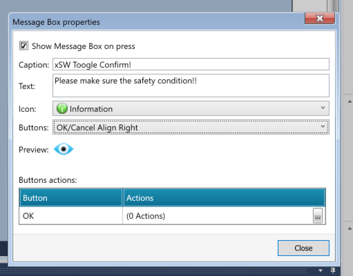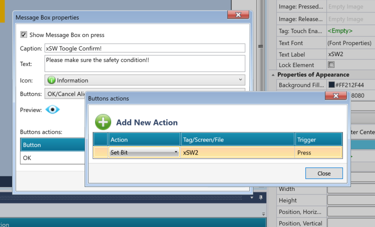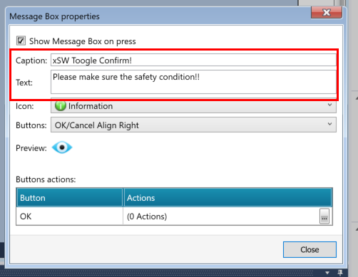 今回はOKボタンを押すとxSW2をTRUEにする動作を設定しました。