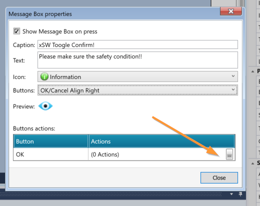 次はButton ActionsのところでOKを押したときトリガーする動作を設定します。