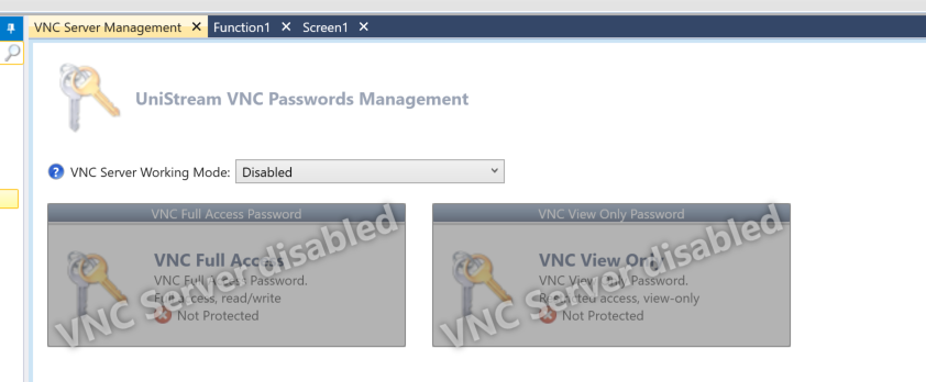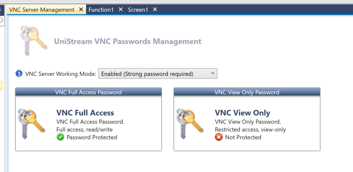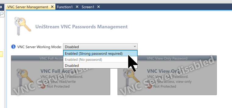 VNC Server Working ModeのDrop-ListからEnable(Strong password required)を選択します。