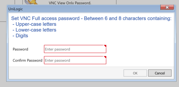 こちらはUniLogicのVNC Server設定画面です。