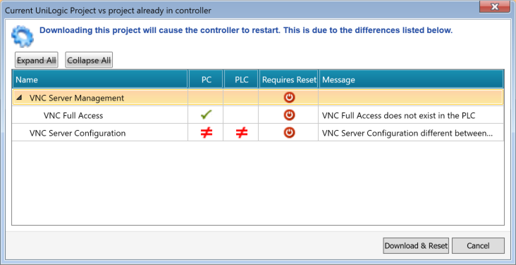 注意するのはVNC Serverを有効にするにはPLCのDownloadにリセットする必要があります。