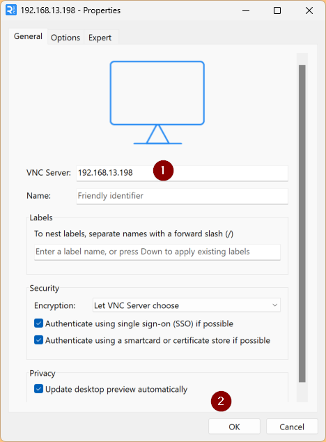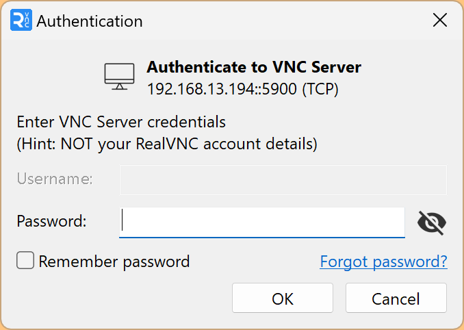 VNC ServerにIPアドレスを入力しOKします。