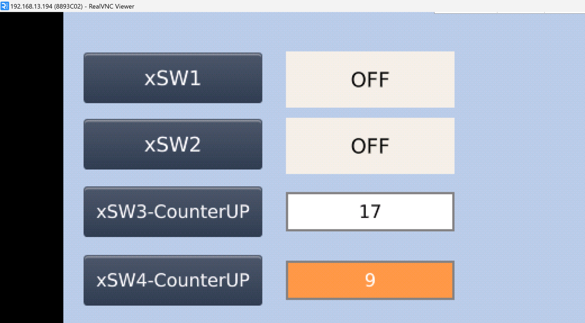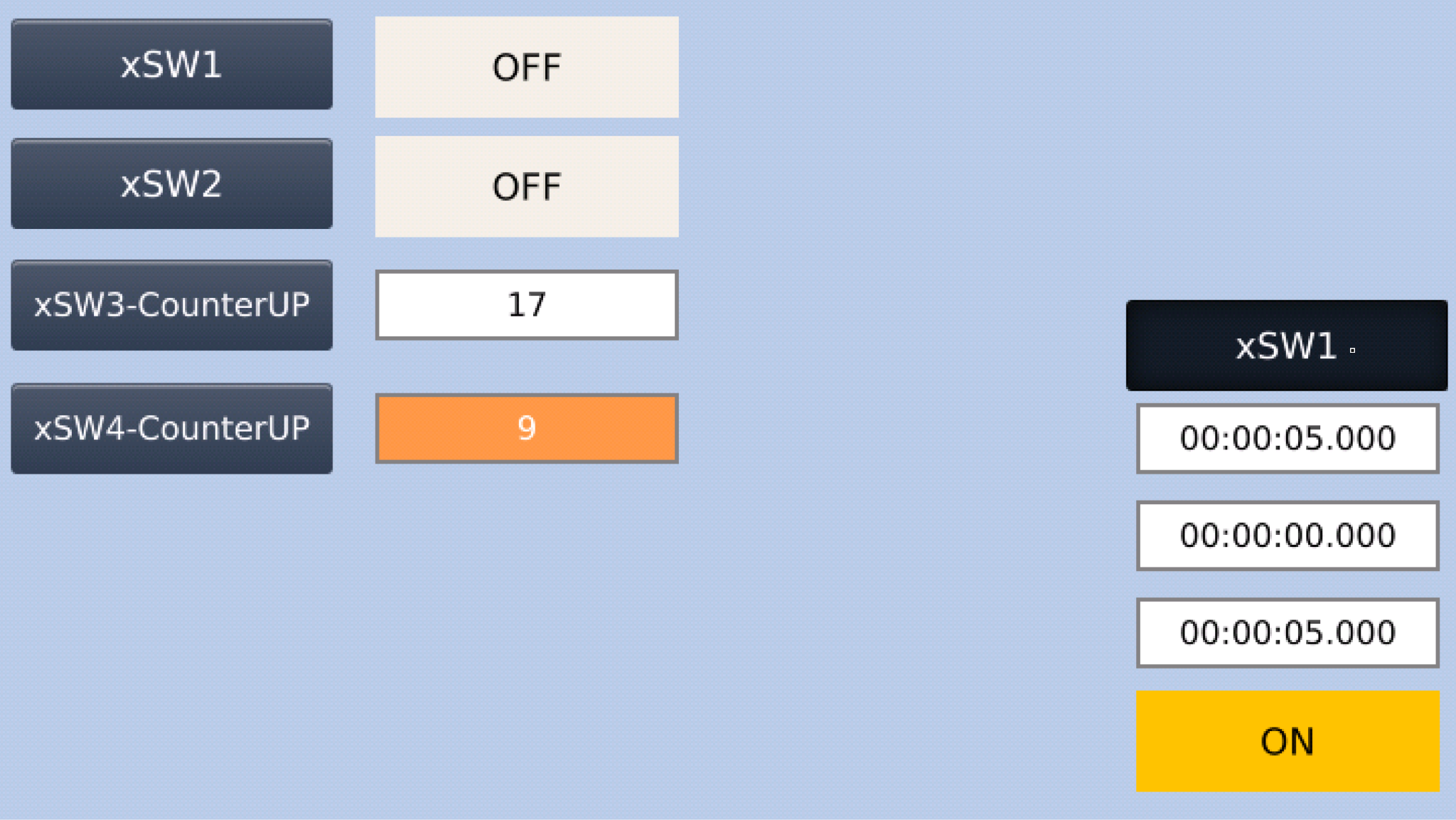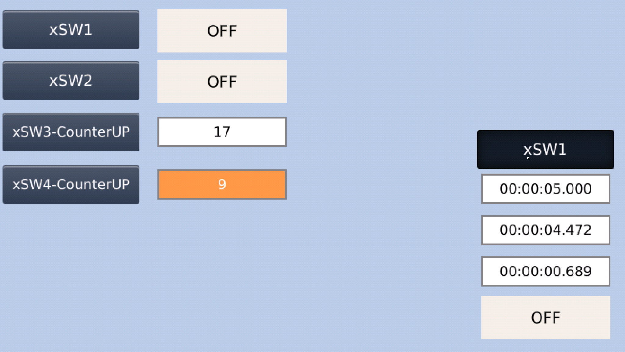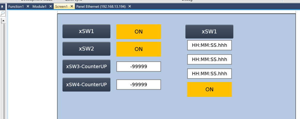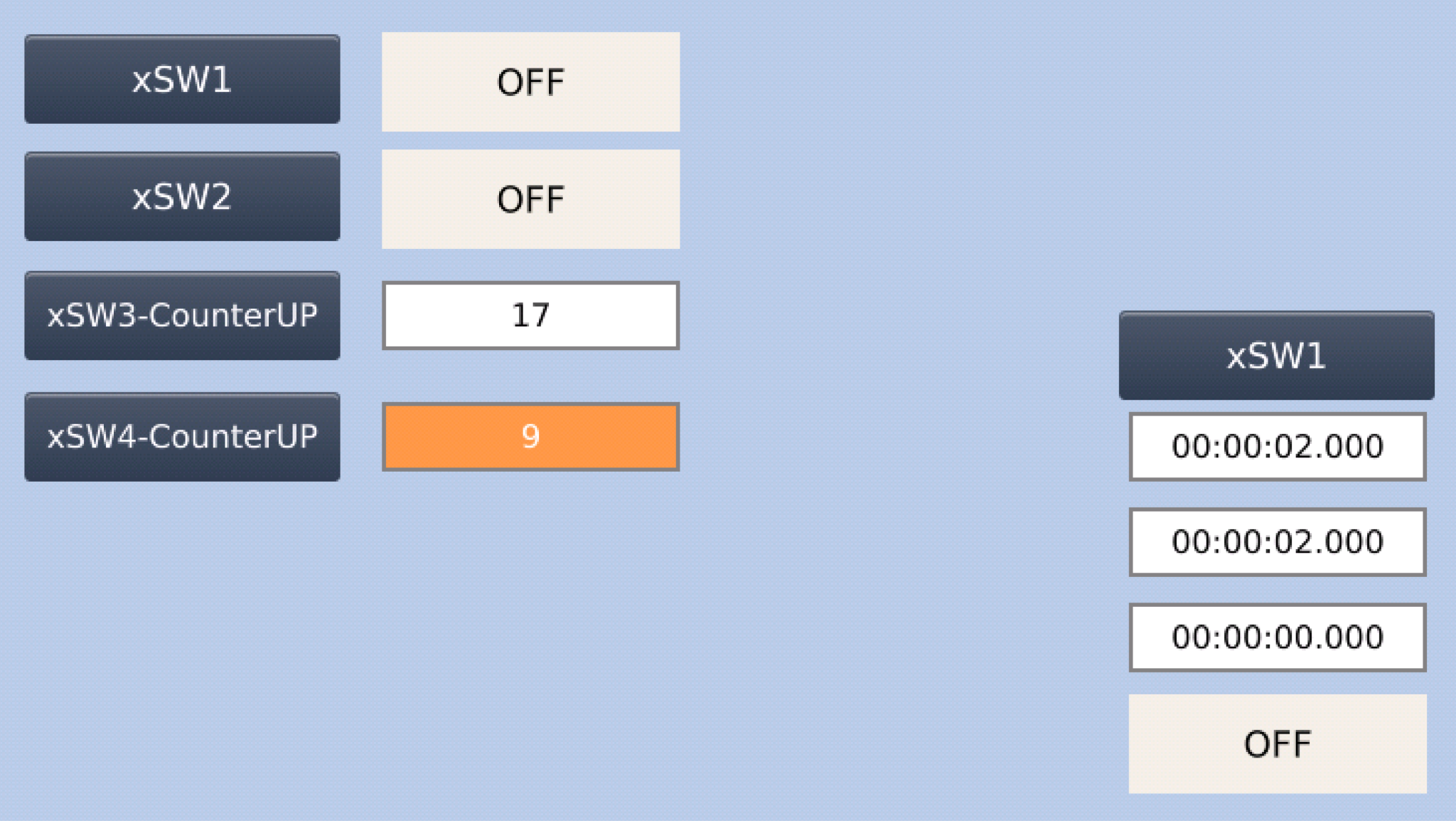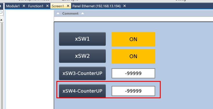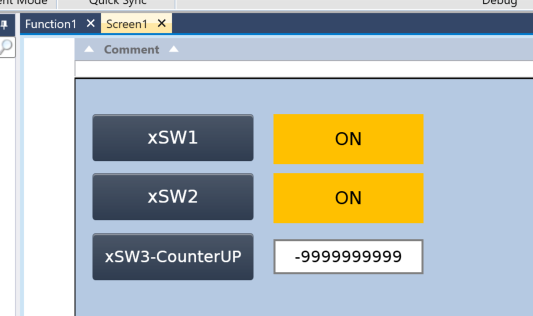 下図のようにxSW3-CounterUPを押すたびに数字表示がプラス1されます。
