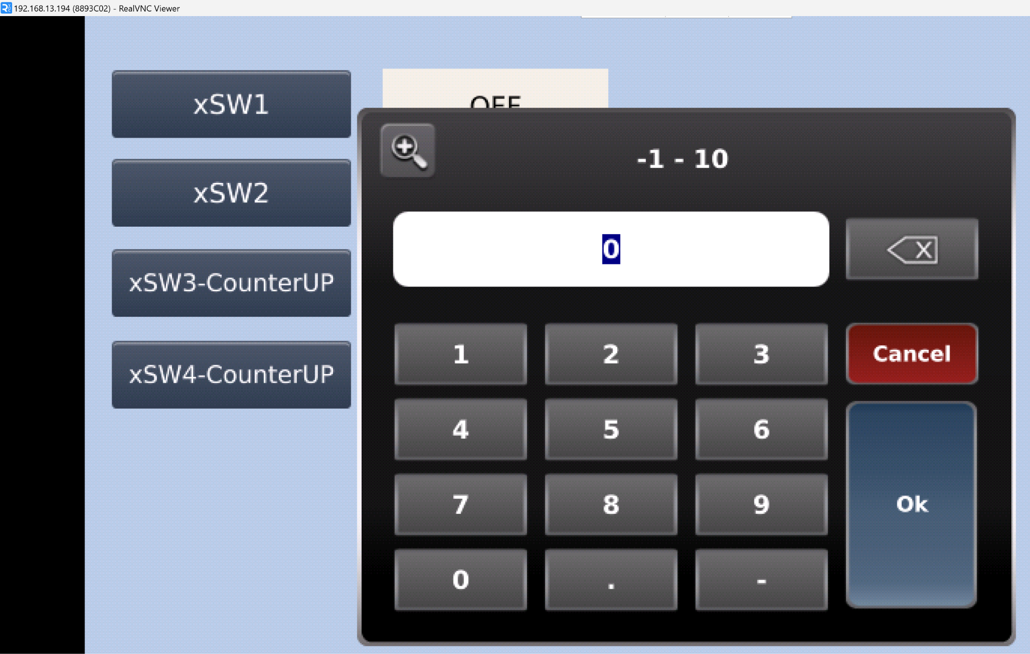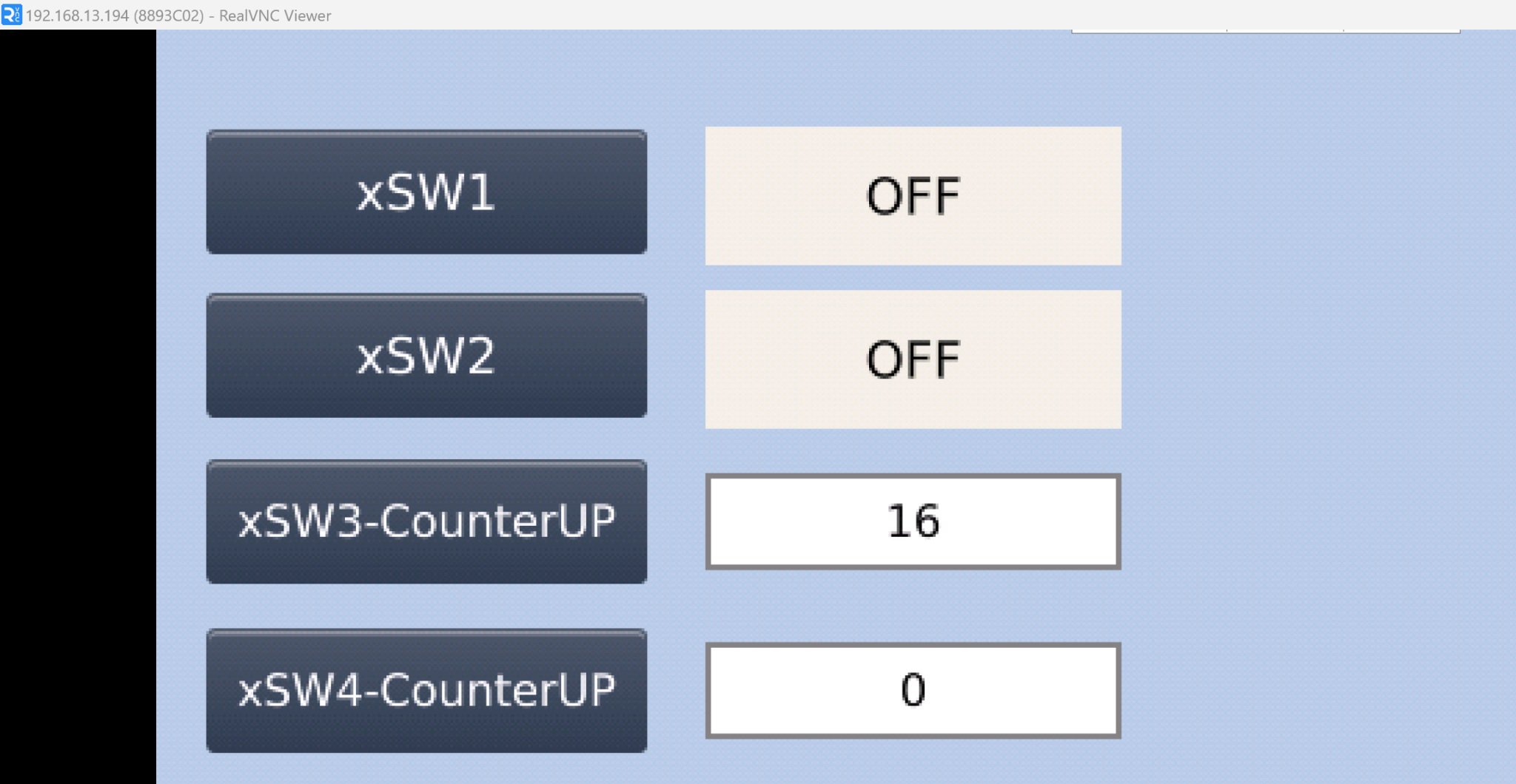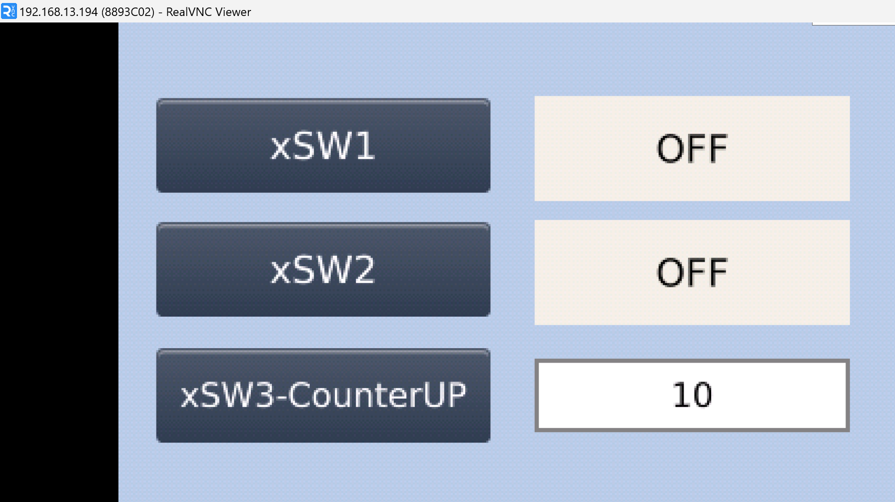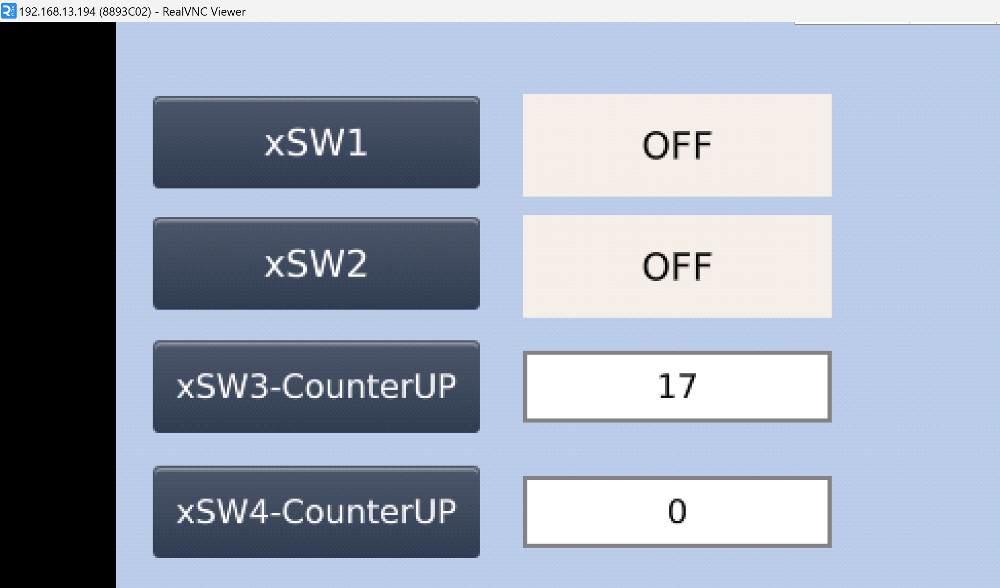 下図のようにxSW3-CounterUPを押すたびに数字表示がプラス1されます。