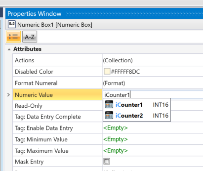 次はNumeric Valueのところに表示した変数を割り付けます。